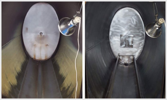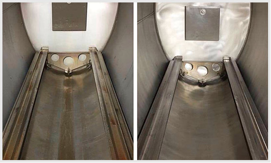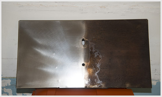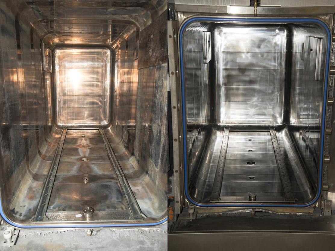 Au cours de nos travaux, nous en avons profités, à certaines occasions, pour photographier l’état original de l’acier inoxydable que nous avions à travailler ainsi que le résultat final une fois le nettoyage et le polissage terminés. Vous pouvez voir ci-dessous quelques-unes d’entre elles.